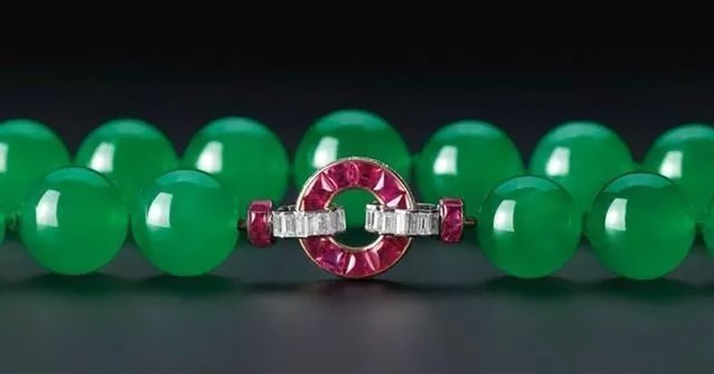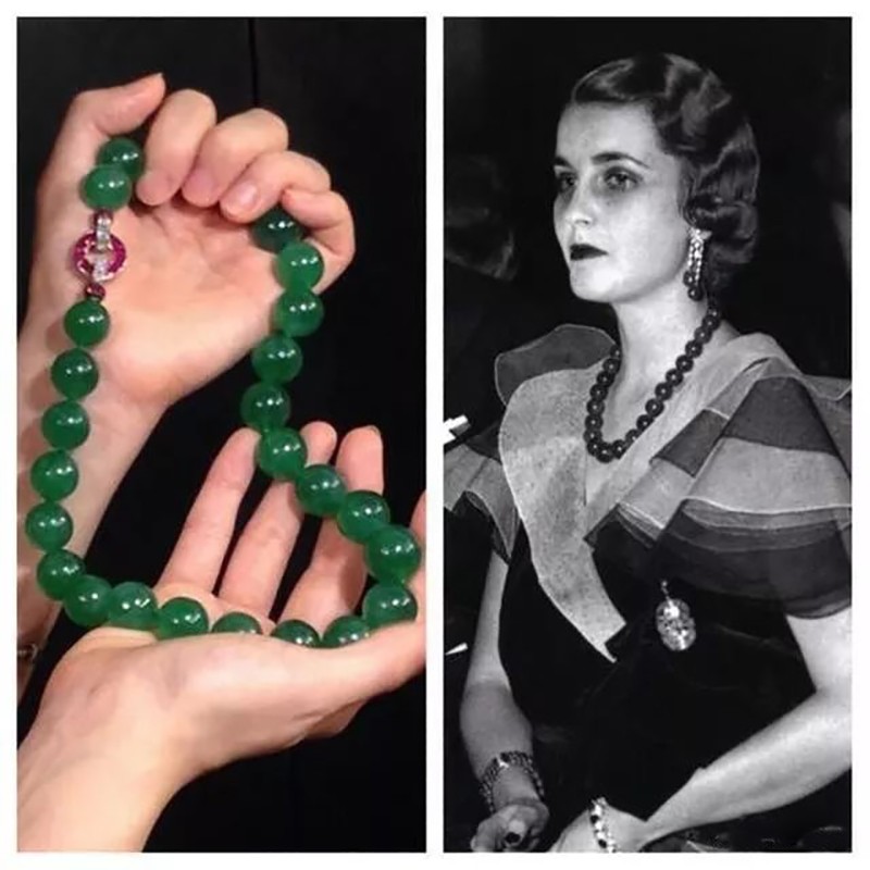 这条项链曾属于名媛芭芭拉赫顿。项链上的27颗翡翠玉珠应该来源于清末宫廷,后流传在西方上流社会。2014年4月7日,在香港苏富比的拍卖会上,以2740万美元拍出。