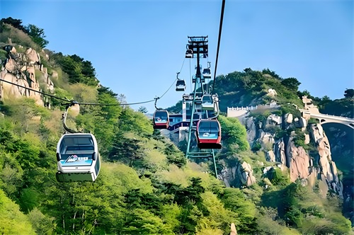 泰山索道是连接泰山中天门和南天门的一条重要交通线路,也是游客们欣赏泰山美景的绝佳方式。乘坐索道,游客们可以俯瞰整个泰山山脉,欣赏到壮观的自然风光和人文景观。