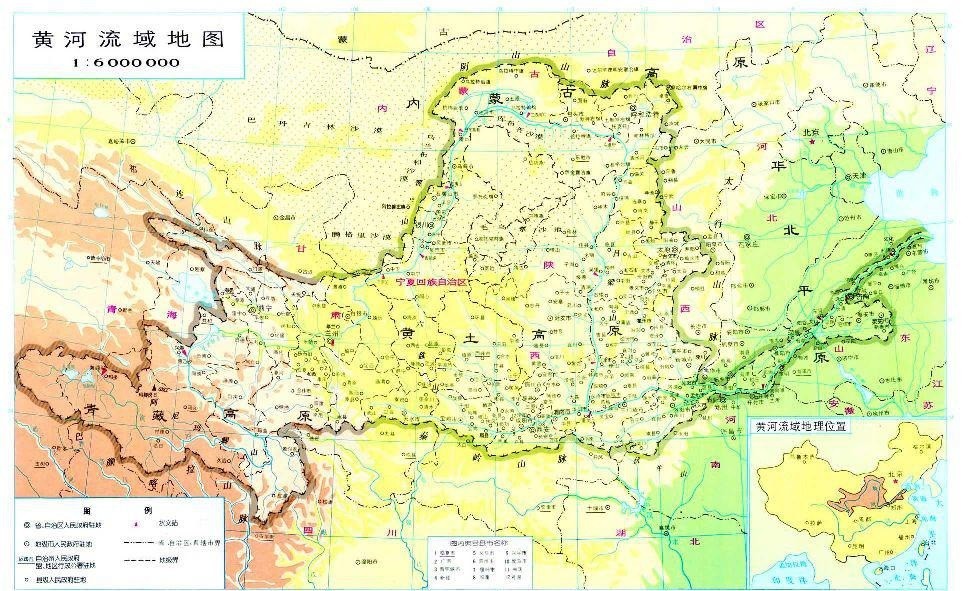 黄河流域广阔的中部是世界上最大的黄土沉淀区。这里集中了地球上70%的黄土。源源不断的黄土输送给华北平原,带来富庶的同时也带来巨大的风险:由于黄河下游水势平缓,所以泥沙淤积严重,久而久之河床不断抬升,河堤也被迫不断加高,如此恶性循环之下就形成了河床远远高出城镇的地上悬河。在1946年以前的几千年中黄河决口泛滥达1593次、较大的改道有26次。中华民族治理黄河的历史从大禹治水时就开始了,新中国成立后第一代领导人更是发出指示:“一定要把黄河的事情办好”。