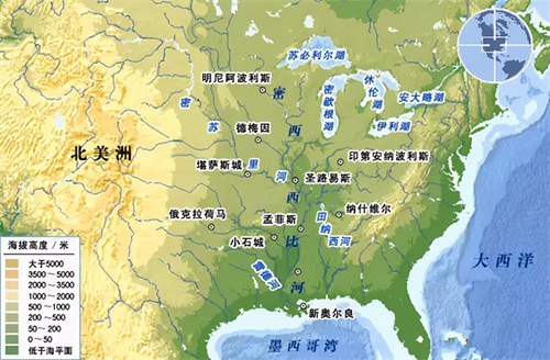 如果以干流只流经一个国家作为参考标准,那么世界上仅次于长江的只流经一国的第二长河是密西西比河:全长6021公里的密西西比河是北美洲流程最长、流域面积最广、水量最大的河流,也是世界范围内仅次于非洲尼罗河、南美亚马逊河、中国长江的第四长河。密西西比河的流量位居亚马孙河、刚果河、长江、拉普拉塔河、恒河、叶尼塞河之后(世界第七位)。密西西比河的干流全部位于美国境内,但其上游部分支流源自加拿大,只不过加拿大境内的流域面积很小。