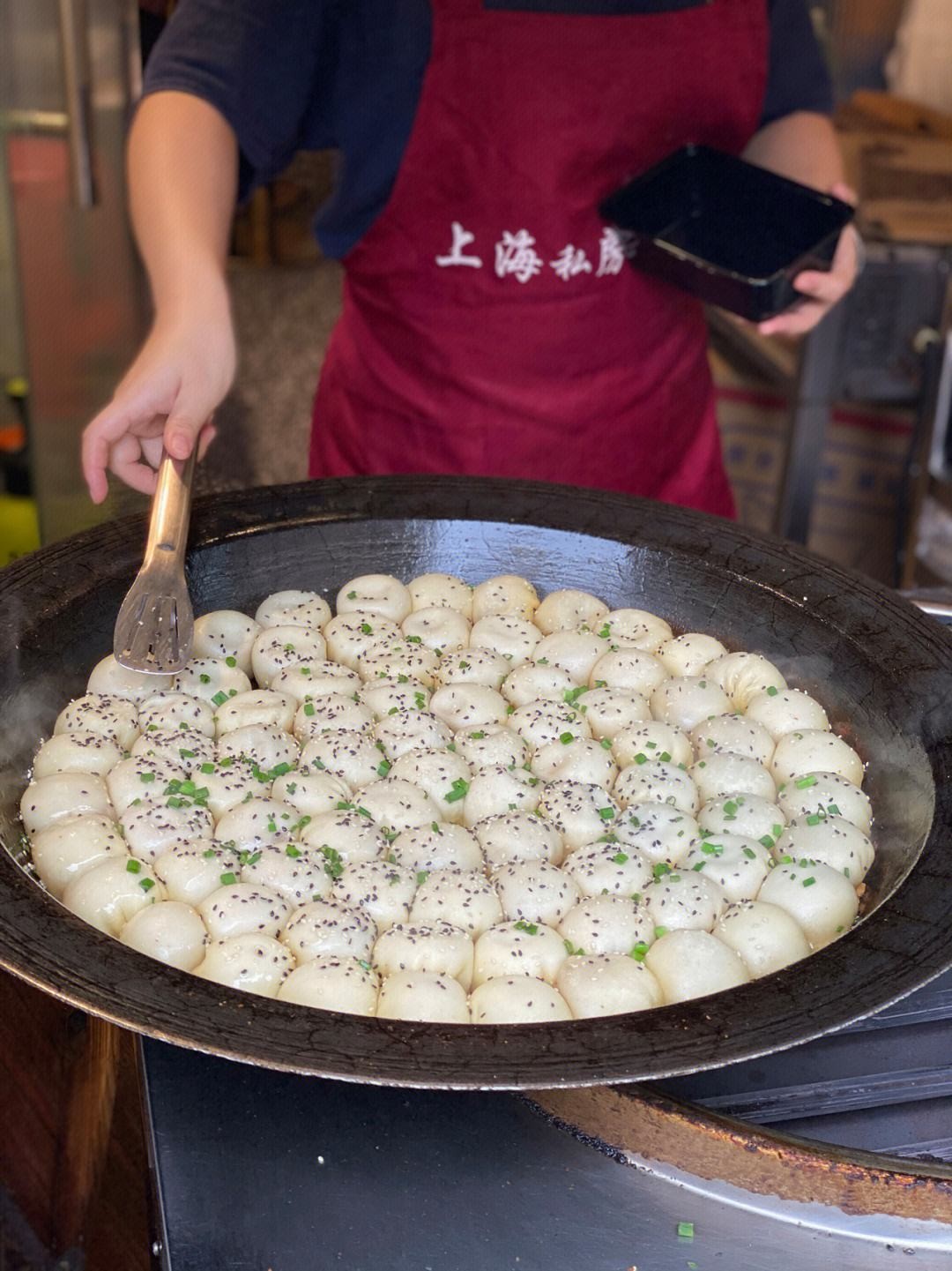 二、上海生煎包:底部金黄,肉馅鲜嫩