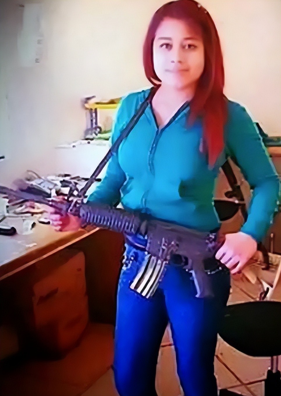 而下面图片中的这个墨西哥少女,她手持步枪,一副自信的表情。她根本不是在为理想与革命而奋斗,她的真实身份是一名墨西哥大毒枭手下的刺客——杀手胡安娜。