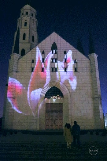 时钟走到21点15分时,福音礼堂的光影秀将四处的人召集起来,作为昆明的爱情地标,这里从来不缺浪漫故事。