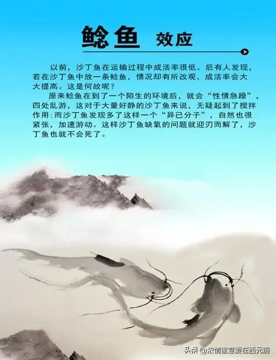 “在沙丁鱼中放入鲶鱼,能激发沙丁鱼的活力。”这就是鲶鱼效应,它告诉我们,竞争不仅是压力,它还可以激发我们更大的潜力。很多时候,生活中的“鲶鱼”就是那些给我们带来压力、挑战和竞争的人或事。