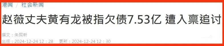 在2024年12月23日,香港媒体就爆出来黄有龙负债7.53亿元,这个数字很吓人,其实这个时候的他,已经不是第一次被曝出负债了。