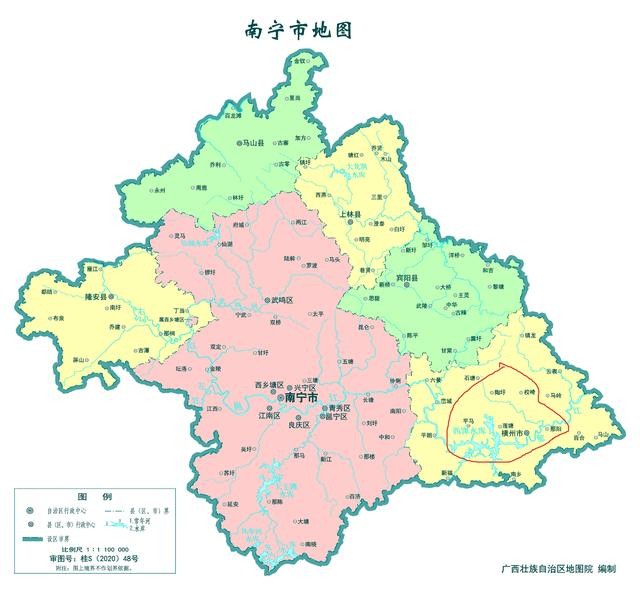 2021年2月3日,撤销横县,设立县级横州市,以原横县的行政区域为横州市的行政区域,由广西壮族自治区直辖,南宁市代管。