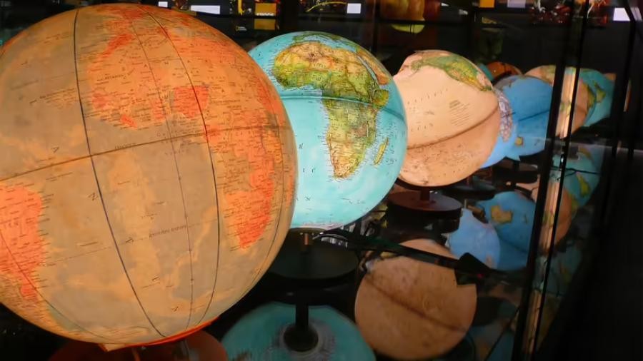 世界各地的地球仪在伦敦摄政街的国家地理商店中闪闪发光。