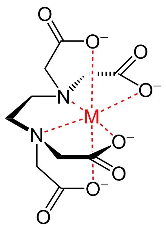 作为一种重要的螯合剂,EDTA 配置成乙二胺四乙酸二钠钙,可防止其与体内钙结合。另一种形式的乙二胺四乙酸二钠,具有螯合体内钙的能力。