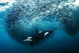 来自瑞士的安迪·施密德 (Andy Schmid) 在挪威谢尔沃伊 (Skjervøy) 凭借这张雌性逆戟鲸追逐鲱鱼的照片获得了水下类别的金牌。