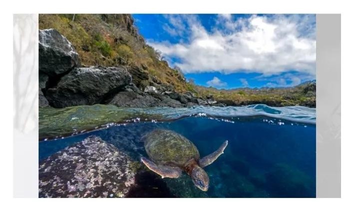 这张海龟在厄瓜多尔加拉帕戈斯群岛之一的圣克里斯托瓦尔附近觅食的照片获得了栖息地类别动物铜牌
