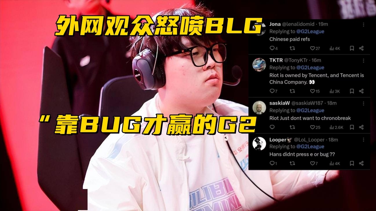 奇招频出的G2,险些就把BLG送回家了,在双方比赛期间,还发生了一个小插曲,导致BLG现阶段,被不少外网观众怒喷“BUG队”,甚至连LPL赛区都被波及,看过比赛的应该都还有印象,BLG和G2的第三局,31分58秒的时候,有出现过一个暂停,而且时间还挺长的,大家都被迫熬夜了。