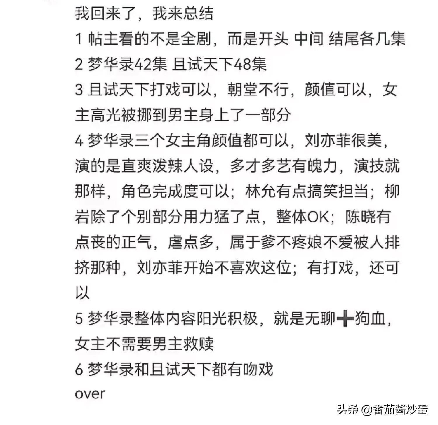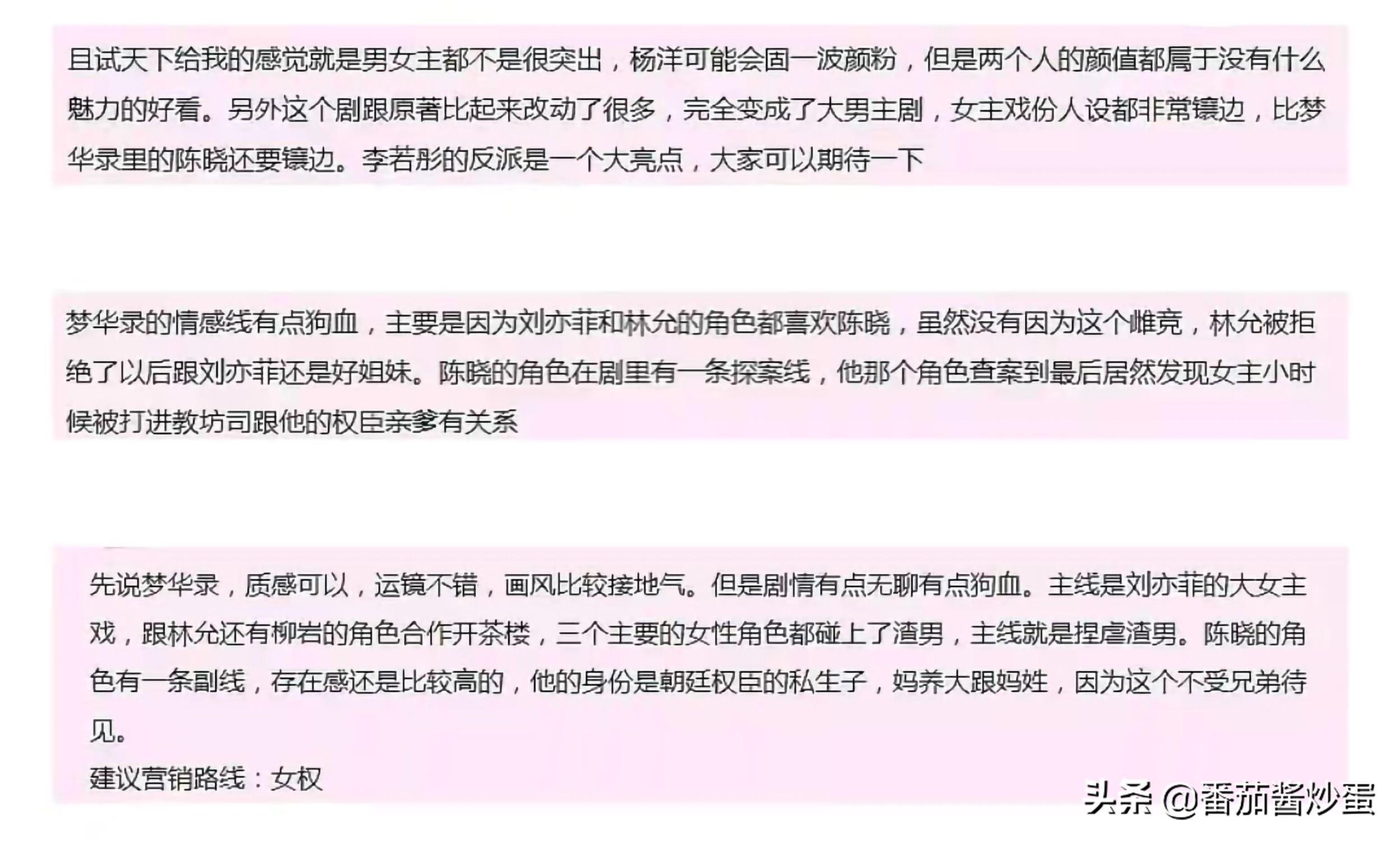 有网友提前观看了《且试天下》和《梦华录》,对这两部电视剧做出评论,但是评价都不高。