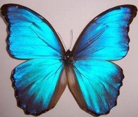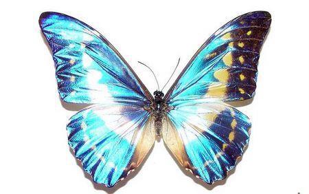 光明女神蝶 Morpho Helena (海伦娜闪蝶、蓝色多瑙河蝶),是世界上最美丽的蝴蝶。她的形状、颜色都是无与伦比、无可挑剔的美丽,为极品蝴蝶。这种蝴蝶在我国仅有3只,2只在的西安的蝶恋花昆虫馆,1只被北京一收藏家收藏。