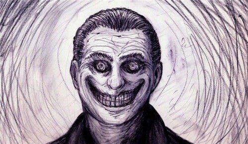 3、浅笑的男子:一位大弟子在更阑里径自漫步时,觉察别名生疏夫君启始一面随同他,一面跳着奇异的舞姿,每跳完一段舞步便会用一种诙谐的办法地向前滑一步,当他们隔绝越来越近,弟子才创造生疏夫君大得像二颗乒乓球的眸子分散着猖獗的光线,脸上绽搁出诡异的浅笑,直到笑脸越来越大,嘴角简直遇到耳朵,他马上吓到直奔回家,再也不敢在夜半径自漫步。
