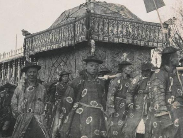 其实,正规的仪式是先由七十二人将棺材抬出东华门,按大清典制,走在最前面的是六十四位引幡人,高举万民旗伞;接着是皇帝的卤薄仪仗队,约有一千六百人,举着各种兵器、幡旗和各式各样的纸扎,浩浩荡荡,十分威风。在这其中起着最重要作用的就是抬棺木的杠夫,每班有一百二十八人,分三班轮流抬送,他们要做到的是让棺材不落地。在棺材后面还会跟着全副武装的八旗兵,文武百官、皇亲国戚等等,车轿连绵不断可以说像极了我们现在的阅兵仪式,我们在电视剧上看到的场景只是冰山一角而已。