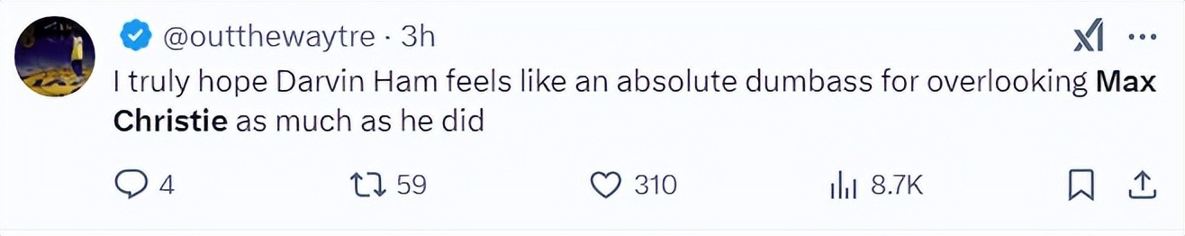 美记outthewayter写道:我真的希望达尔文-哈姆认识到忽略克里斯蒂的一个错误,他是一个十足的傻瓜。
