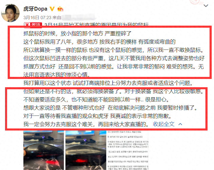 Dopa发长文解释停播原因:使用8年的鼠标坏了,找不到手感