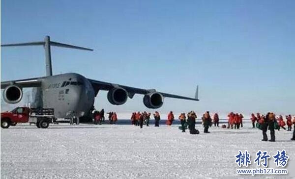 南极洲麦克默多站是世界十大最危险机场之一,其危险之处在于跑道本身的质量,因为这个机场的跑道就是南极的冰面。20厘米厚度的冰面需要承受200吨重的飞机,而冰下就是近800米深的海。一旦冰面破裂,飞机在几分钟能就会消失在人们的视线之中。