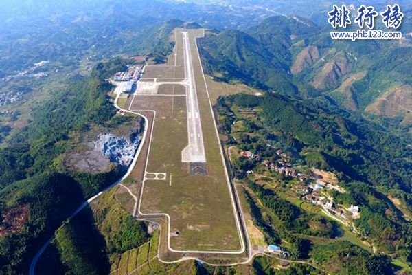 这是第一个建在悬崖边的机场,在建造机场时削平了65座山头。但是飞机跑道仅有45米宽,滑道仅为136.5米,又短又窄的跑道,对飞行操作技术要求是超高的。并且又是建在山上,受地形的影响,会有气流干扰飞机降落。即使在天气晴朗的时候,飞机降落时会看到周围的山,也会对飞行员的心理造成影响。虽然它看起来比卢卡拉机场更险,但是好在周围没有障碍物,因此位列世界十大最危险机场排名第二。