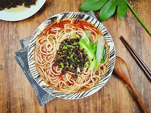 除了火锅,四川还有许多其他具有特色的小吃。比如担担面,这是四川省成都市和自贡市的传统面食小吃。担担面的名字源于摊贩们挑担叫卖的方式。担担面选用的是手工制作的面条,面条细而薄,入口劲道爽滑。上面飘着红油,点缀着芽菜和花生碎等配菜,让整碗担担面更加美味可口。