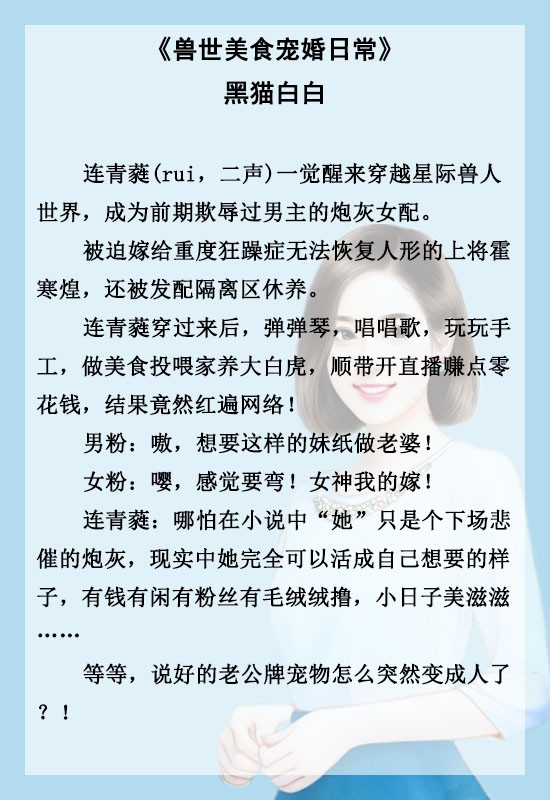 《嫁给病弱前元帅》《兽世美食宠婚日常》《星际精灵少女养成记》《女配成主角》《穿成蠢萌反派蛇的小娇妻》
