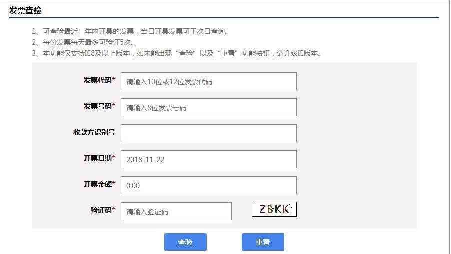 3、每天每张发票可在线查验次数为5次,超过次数后请于24小时后再进行查验操作。