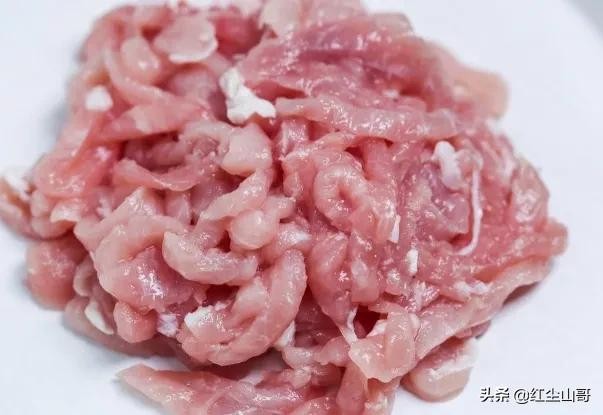 其实切肉是有讲究的,切得对与不对直接影响这道菜的成败。