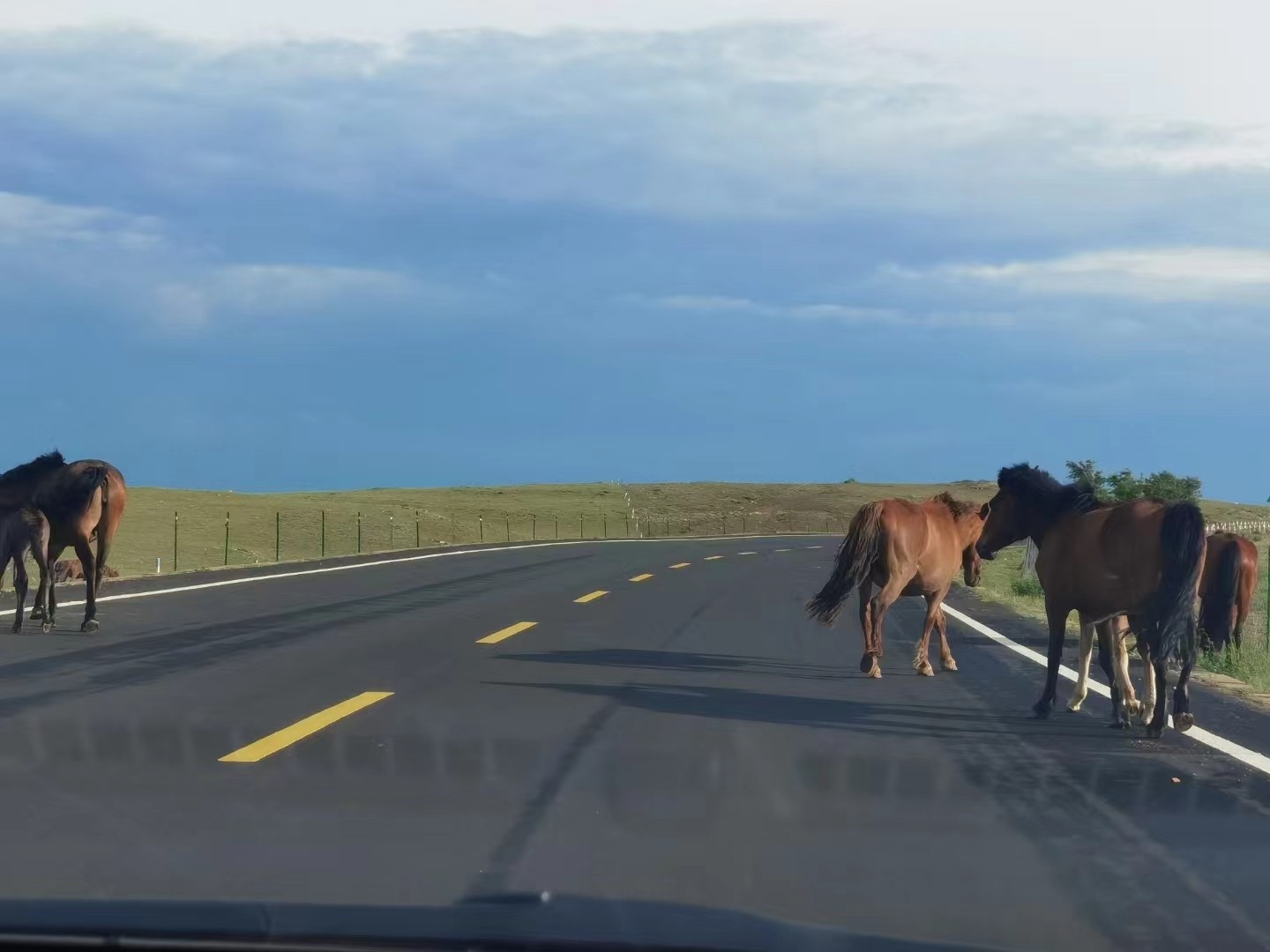 参观完满都拉口岸后沿着210国道,104省道,089县道,绕道希拉穆仁草原,一整天驰骋在一望无际的内蒙大草原上,抬眼望去,天地相接,真如敕勒川描写的"天似穹窿,笼罩四野",看来不止风景在路上,诗人的灵感妙句也是在路上……