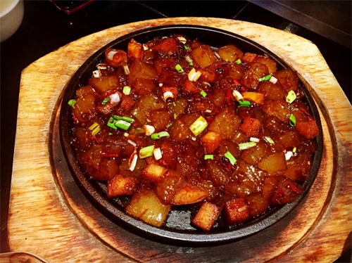 如果有铁板的话最好用铁板最好,炒出来外皮有点焦,里边软嫩入味。家常就用不沾的平底锅炒。