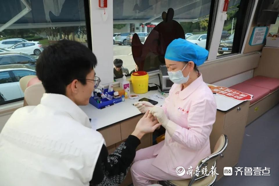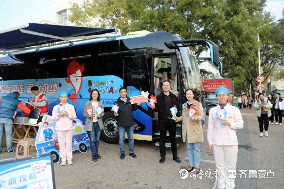 近日,由青岛市中心血站打造的“海豚号”献血车正式投入使用,首站驶入青岛科技大学开展无偿献血活动。献血车内区域布局清晰合理,四桌八采位可以同时满足8位献血者的献血需求,优化献血体验。