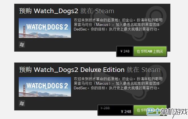 目前《看门狗2》已经正式上架steam,国区售价248元。