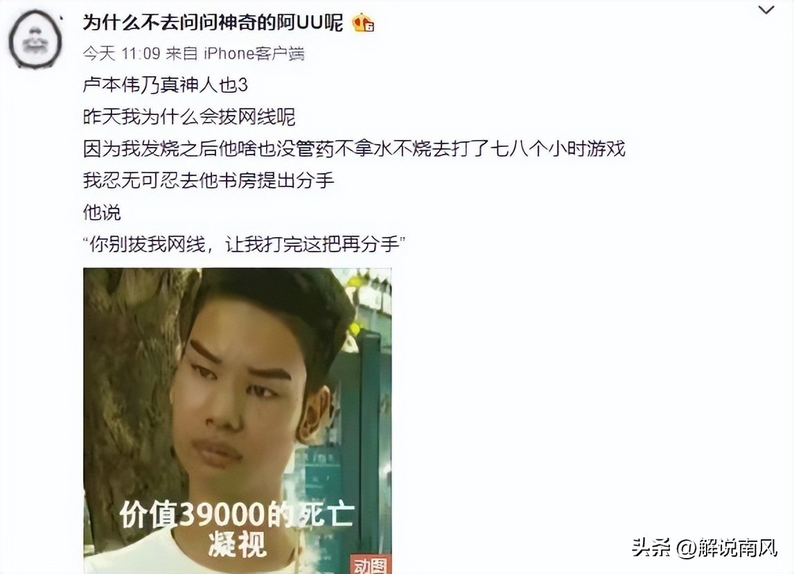 其实,没有分手这事,单单是卢姥爷宣布复出,就已经是轩然大波,感觉两人没必要搞这种操作。最后,告诫男生,不要因为游戏忽略对象的感受,轻重缓急要分清,游戏什么时候都能打,对象要是分了,可没那么快找到下一任,而且还要重新费心费时费人民币。