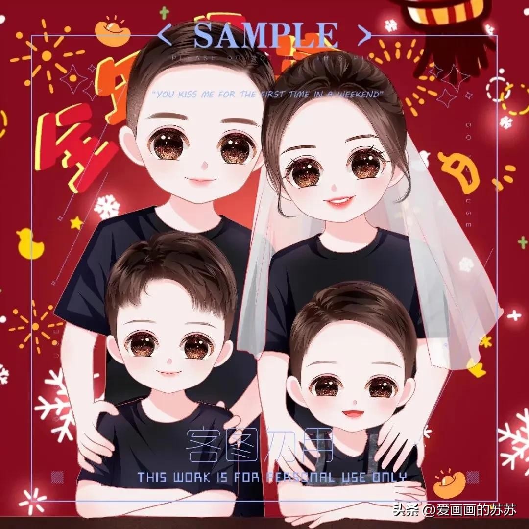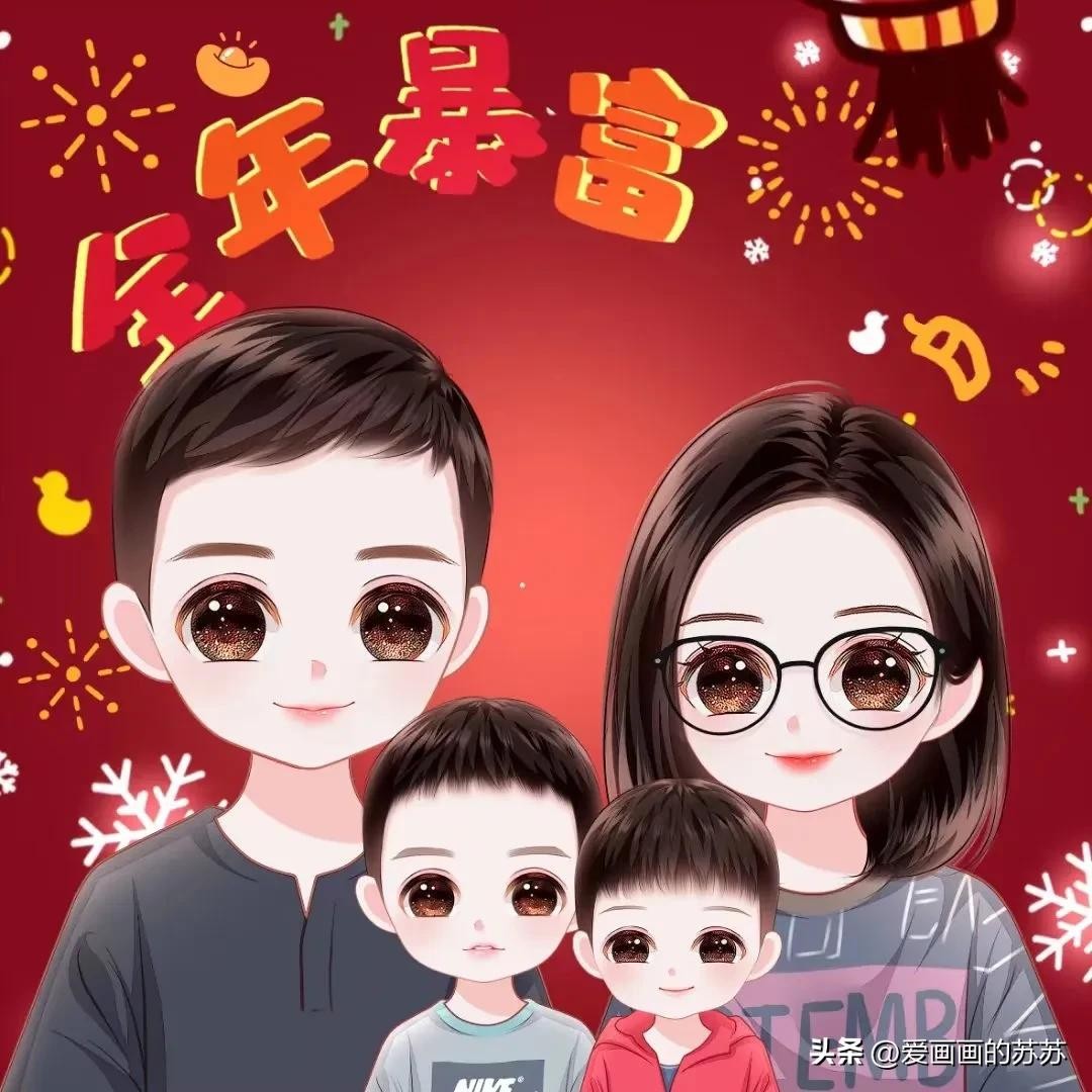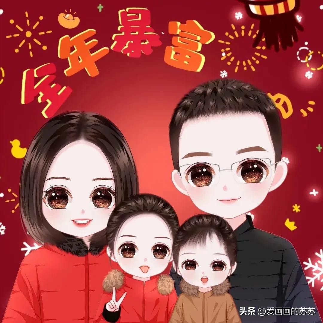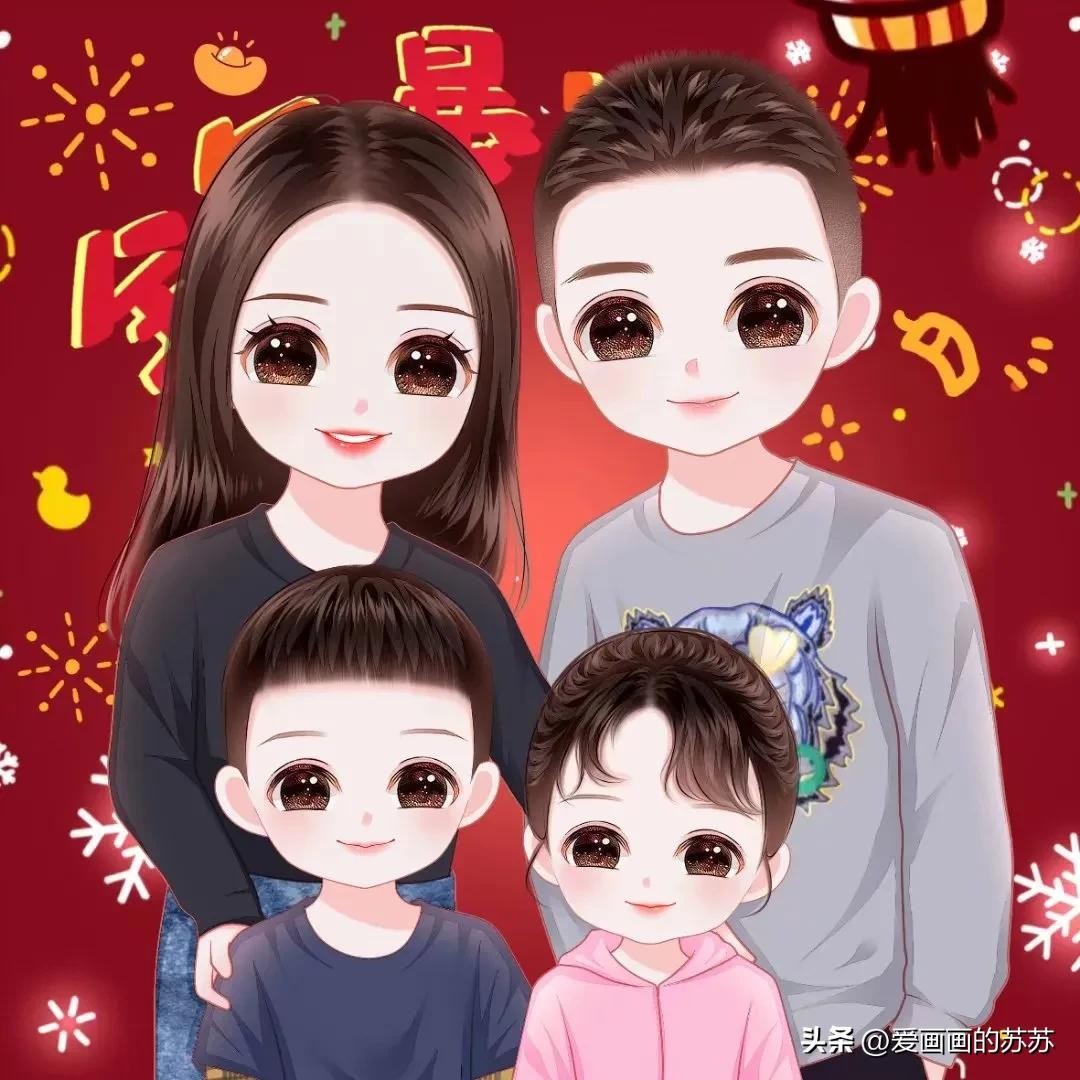 分享一组卡通全家福头像,根据自己家人相片来画。大大的脑门,圆圆的眼睛,一家人聚在一起其乐融融,满满的幸福感。