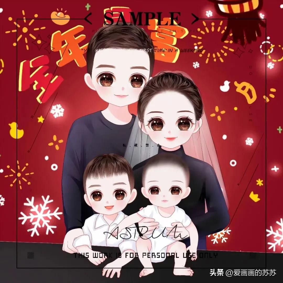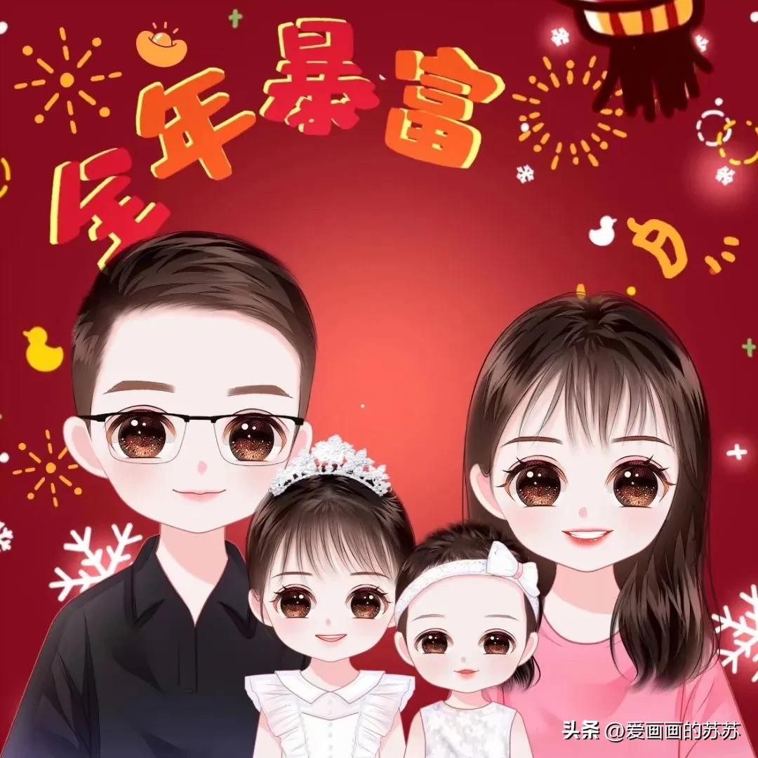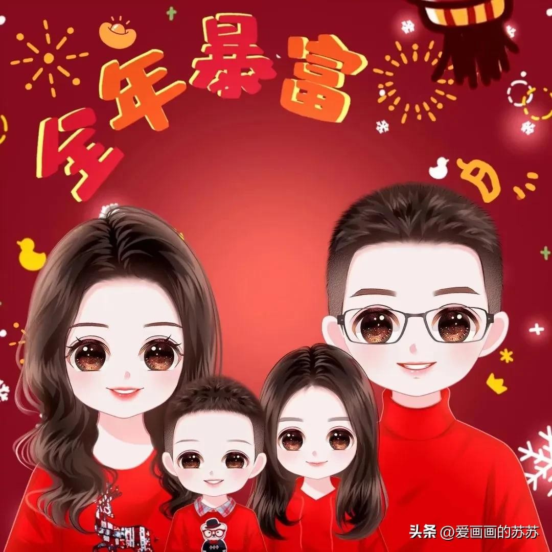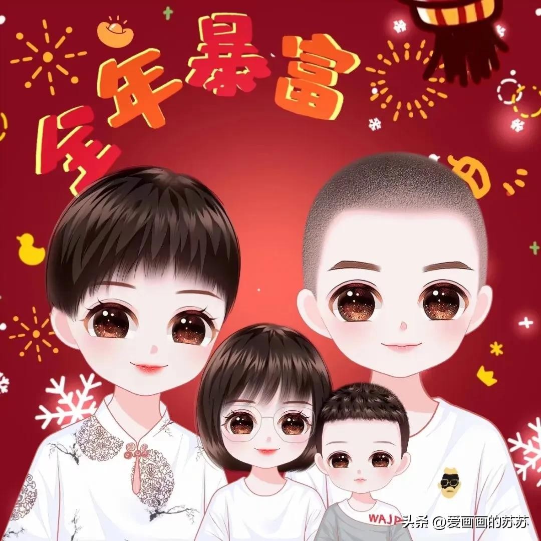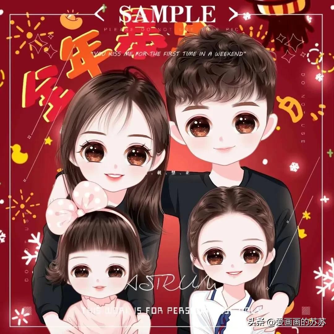 分享一组卡通全家福头像,根据自己家人相片来画。大大的脑门,圆圆的眼睛,一家人聚在一起其乐融融,满满的幸福感。