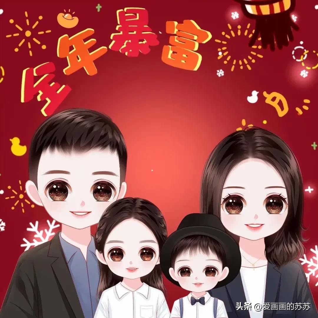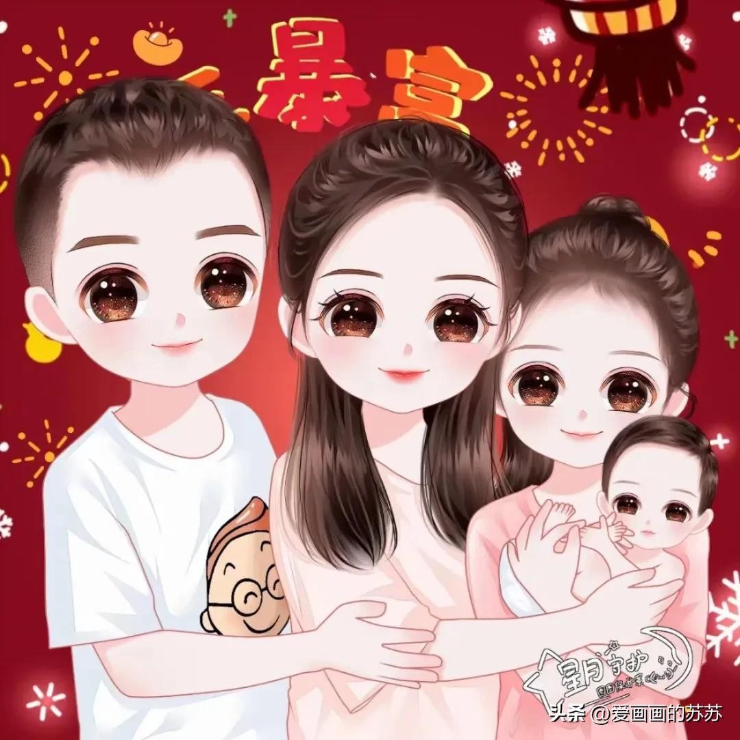 换个头像吧,一家4口的卡通全家福头像,满满的幸福感