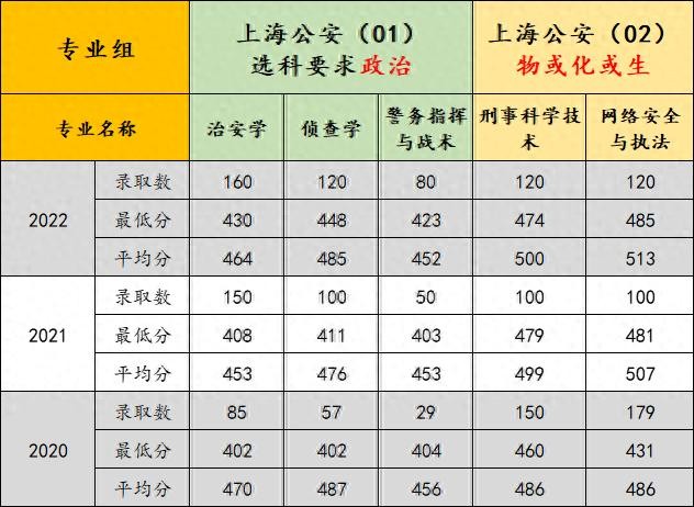 我们可以从表格中看到最近3年上海公安学院的招生计划一直在增加,但同时分数也在是有所提升,尤其是(01)政治组,3个专业的最低分涨幅基本都在20分以上。如果再加上因为疫情导致不少同学来不及做手术(有身体要求)从而失去填报资格,公安学院可以说是近几年报考热度最高的学校之一了。