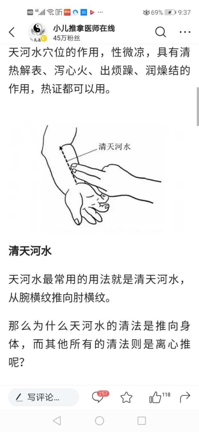 保证水分摄入后就是降温了 ,我家宝宝体温不到39度没吃过退烧药。因为幼儿急疹通常都是反复持续发烧 ,而且都是高烧,如果一直吃退烧药副作用也是很大的。所以我基本上都是通过温水泡脚、腋下腹股沟擦洗、推天河水和纸尿裤灌温水捂卤门的方式来降温。