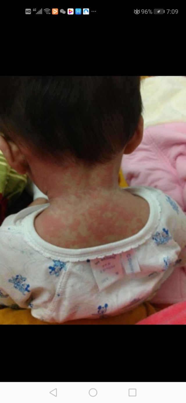 这是我家宝宝出急疹的照片, 手机自带磨皮功能 ,疹子就看的不是很清楚 ,其实全身都是大片的红点点,看着很是吓人。不过疹子一出就表示病程接近尾声 ,我也是长长的出了一口气!小孩生病也是家长在渡劫呀!