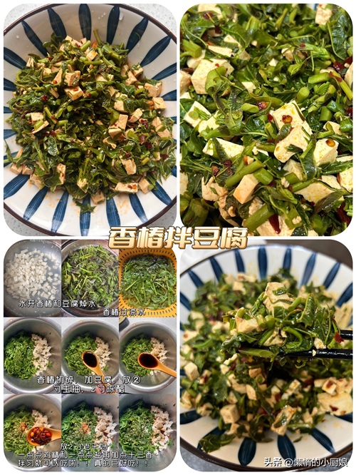 过了一会儿,马齿苋焯烫好了,我将它捞出来沥干水分,然后和切好的豆腐拌在一起。