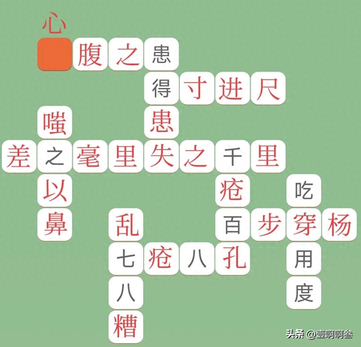 将上图中图二的汉字全部填入图一中,使其成为一组成语。