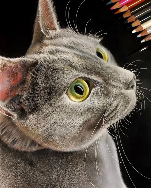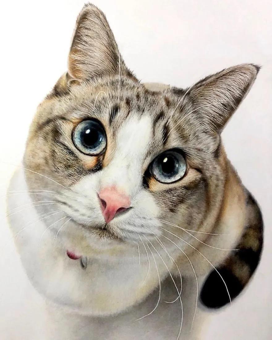 今天无意中看到一组超级美的猫咪图片,原本以为是相机拍下的照片,谁知竟是出自一位艺术家之手!