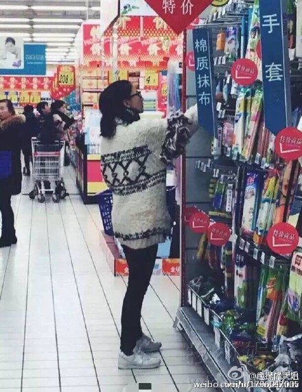 在发现有人拍照以后也没有去特意回避,不过其身边的购物的大爷大妈明显没有认出来我们这位在网上大红大紫的明星。