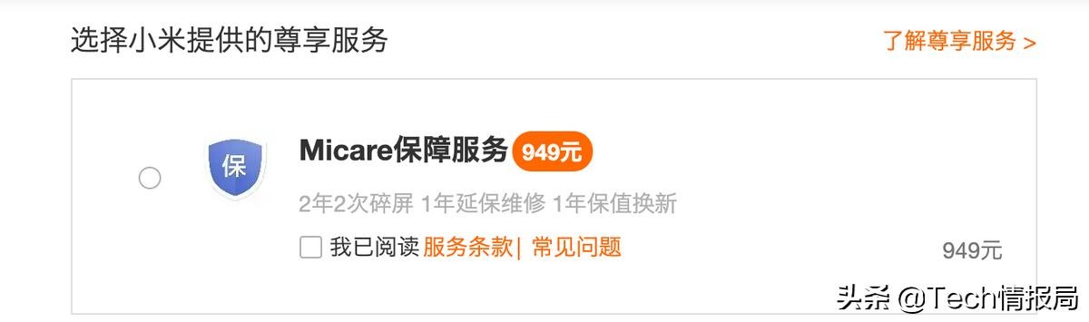 不过,小米官方针对MIX4还提供了多种保障服务。最新的也是最贵的Micare保障服务需付费949元,可提供2年2次碎屏、1年延保维修、1年保值换新等服务,虽然价格不菲但服务内容还是十分值得。