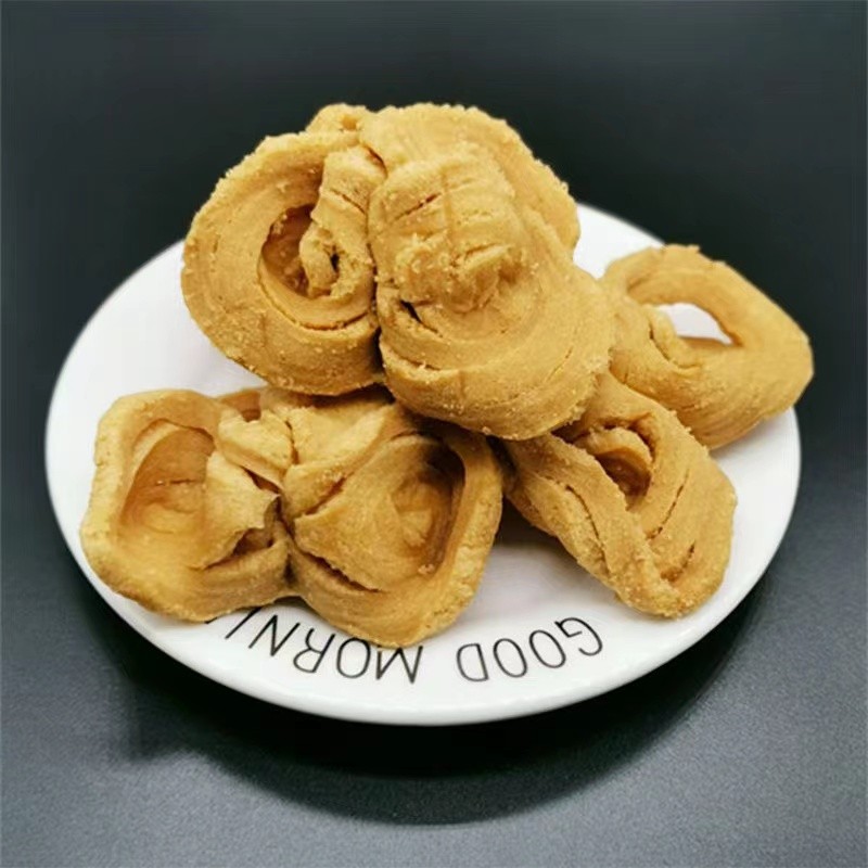 这个广东比较传统家喻户晓的一款小点心,是广东四大名饼之一,不要看它起的这样的名字,其实是很好吃的一款咸口的小点心,口感软中带韧,咸中带甜,风味非常的独特,老人和小孩都抗拒不了的饼干。