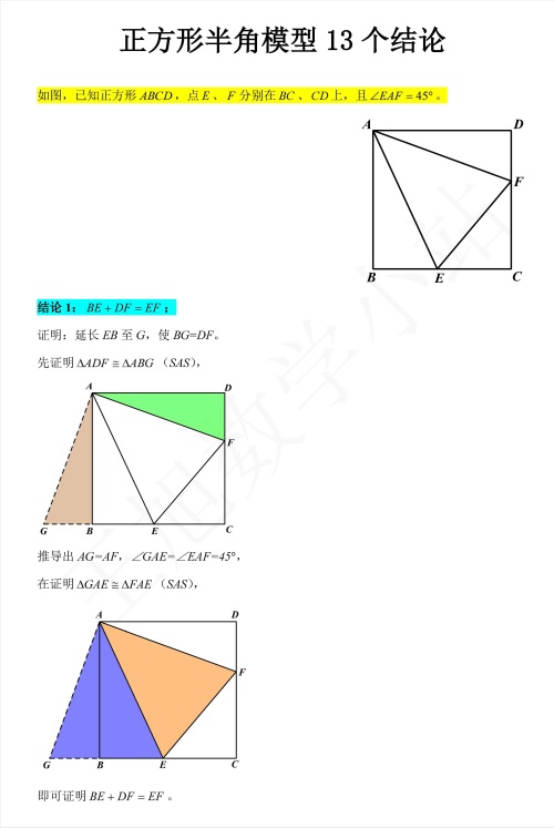 大家可以认真观看图片内容,从中获取免费《正方形半角模型练习题》领取方式,记得点赞、转发、关注哦!!!