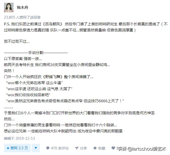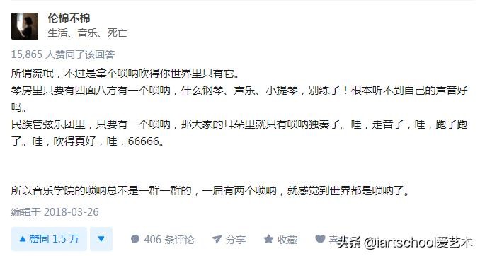 在知乎“为什么说唢呐是乐界流氓”的话题下面,几个高赞的回答是这样说的: