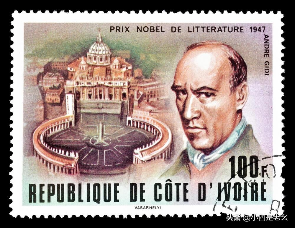 纪德的纪念邮票,他深远影响了法国当代作家