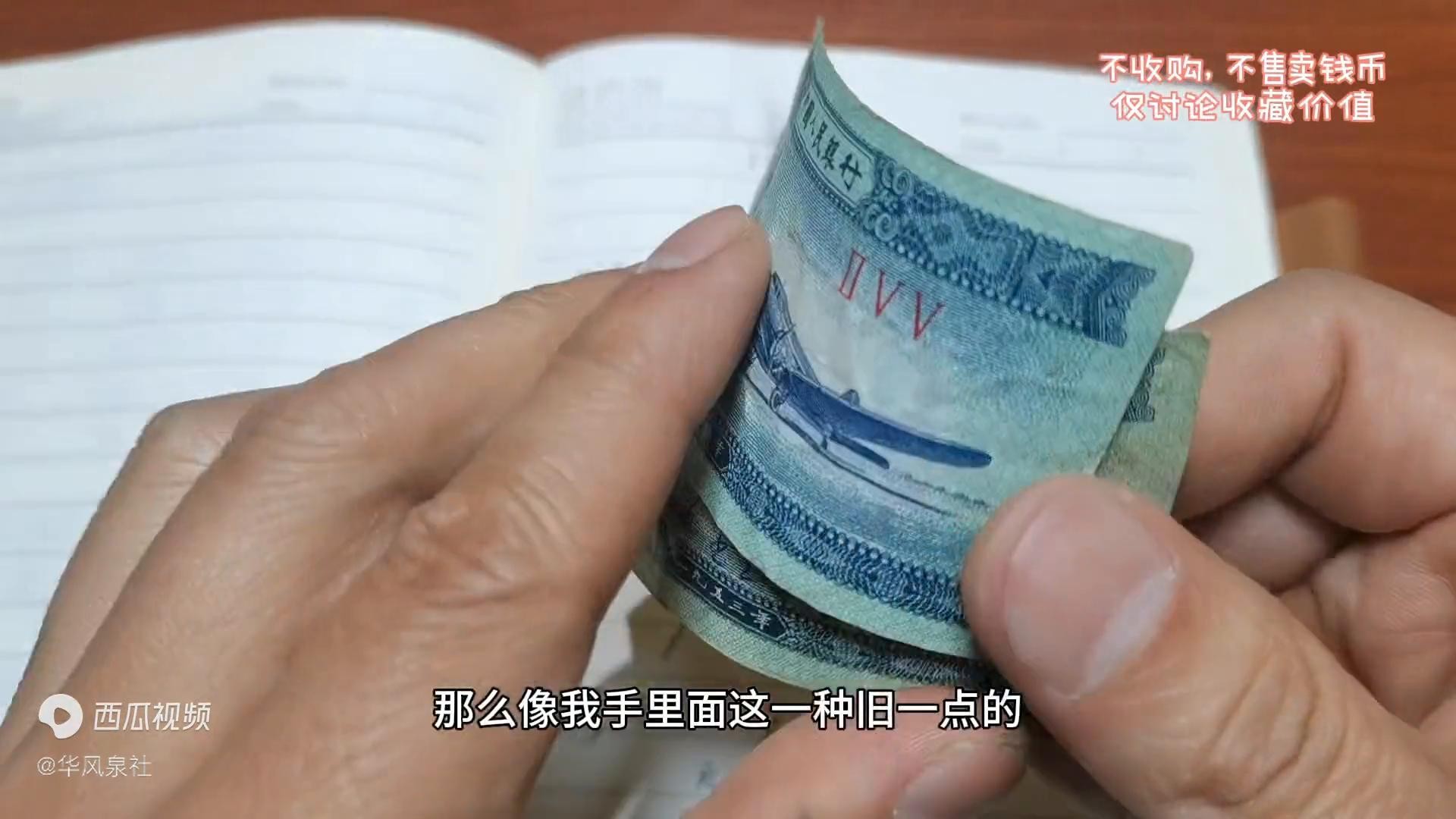 ·像我手里面这一种旧一点的,它就不是全新品相的,那么这种它就不怎么值钱了,一般按照品相不等,价格在几毛一张。