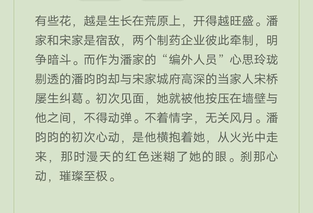 男女主两大家族同为药企,是商场上的竞争对手。为了各自的家族企业,他们斗的你死我活,却又惺惺相惜。