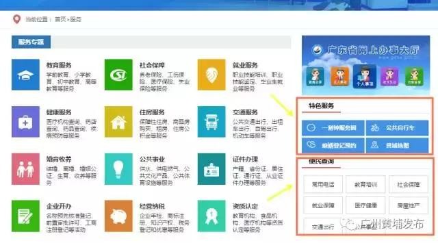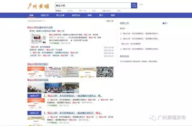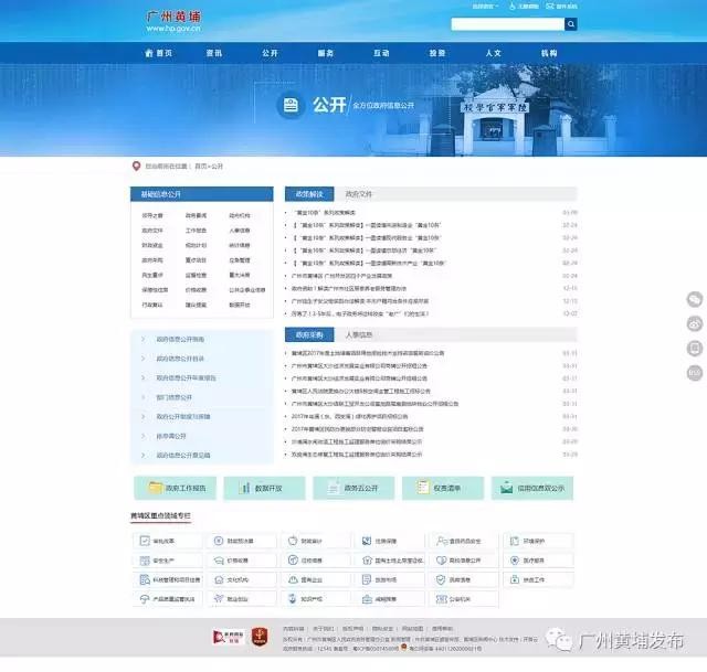 新版网站通过一键搜索,能集中查询黄埔区内各部门政务资源,包括区政府各部门信息公开、网上办事事项、公众互动信息、黄埔发布微信微博、图片、视频等内容。